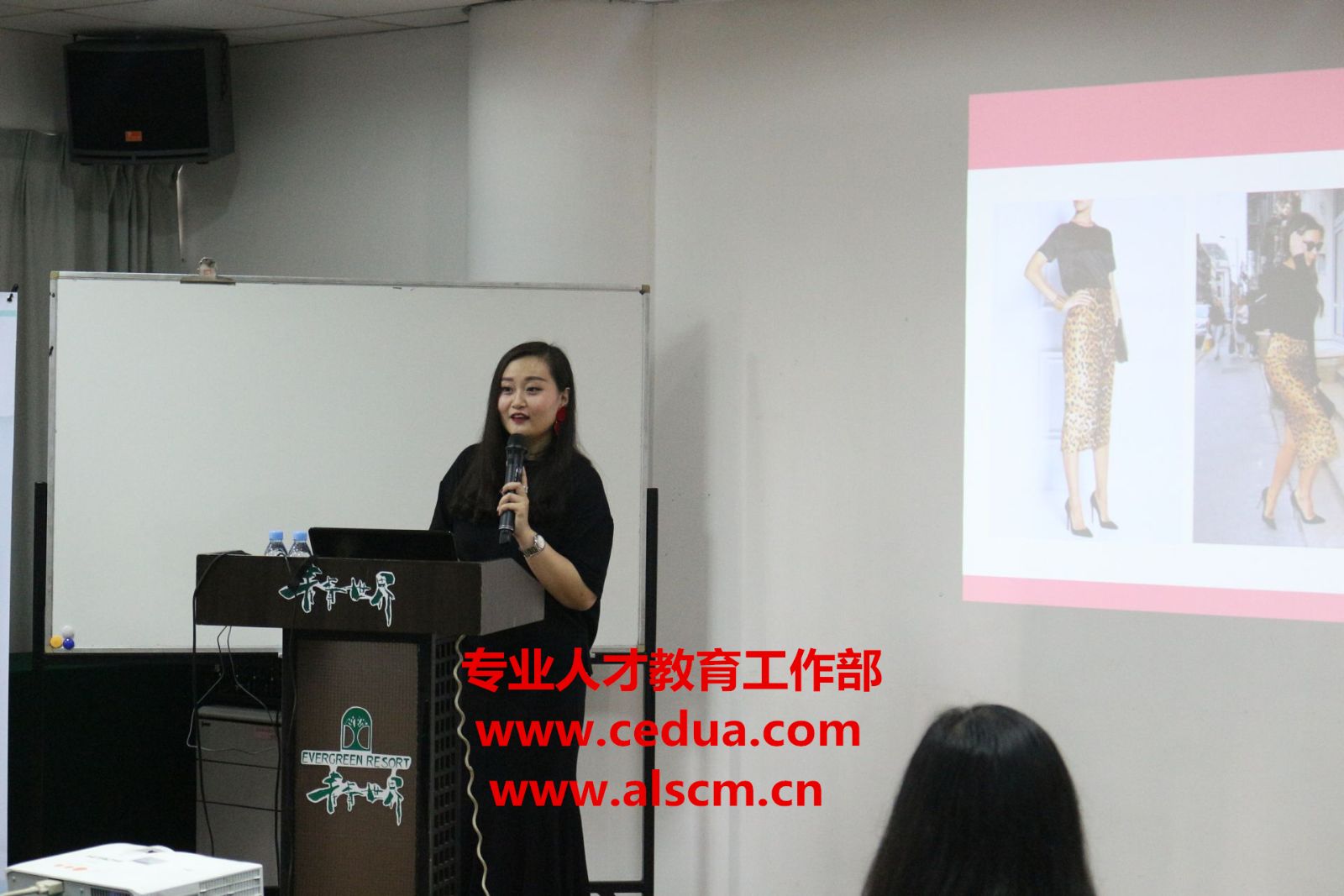 赵梓汝老师讲解道:“作为教师应内强素质、外塑形象。”如怎样通过形、神、雅、美来塑造丽质形象:国际着装惯例、色彩的应用、人体的比例、衣橱的管理等。